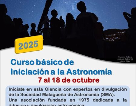 Si este mundo te parece pequeño y quieres conocer nuestro universo tienes una gran oportunidad de mano de la Sociedad Malagueña de Astronomía (SMA) con nuestro curso básico de iniciación a la Astronomía. Un profesorado con mucha experiencia te acercará el Cosmos. Puedes consultar más información en nuestra web: www.astromalaga.es
