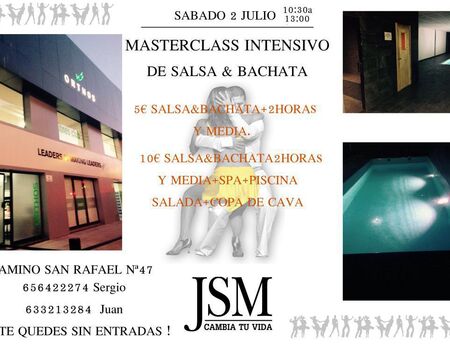 El sábado 2 de julio de 10:30 a 13:30 os esperamos para disfrutar de una Masterclass Intensiva de Salsa&Bachata recuerda nuestra SUPER OFERTA:
