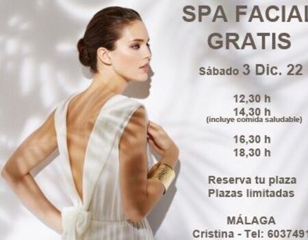 Spa facial totalmente GRATUITO Hay varias sesiones en el mismo dí­a. Plazas limitadas corre por ellas El spa facial sirve tanto como para hombres y mujeres. La ubicación del lugar se dará en cuanto reserves tu plaza Para reservar tu plaza llama al 603749198.
